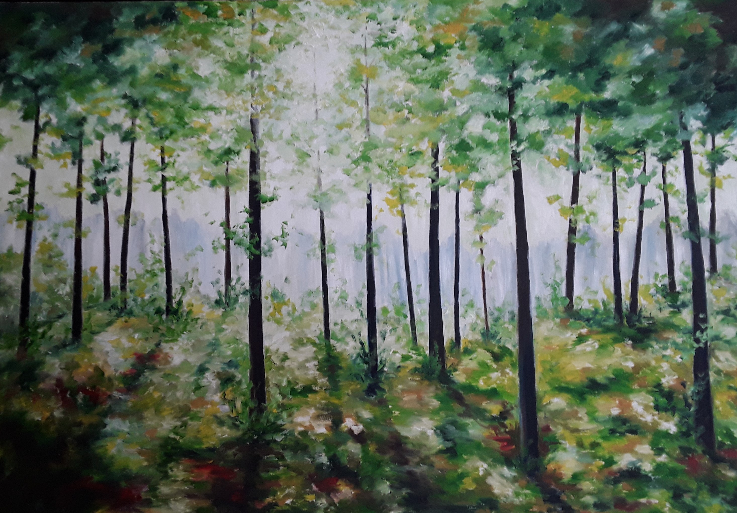 Morgenlicht im Wald 100x100 2018